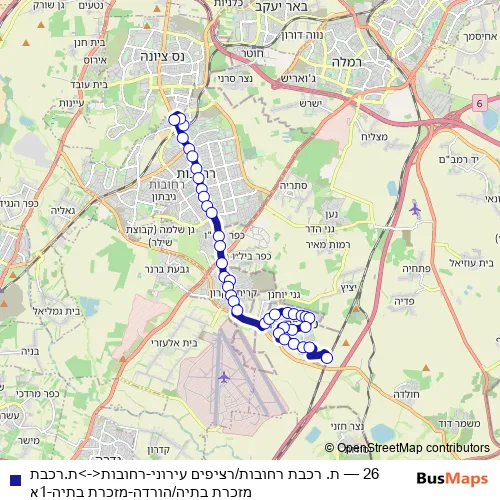Bus 26 - ת. רכבת רחובות/רציפים עירוני-רחובות<->ת.רכבת מזכרת בתיה/הורדה-מזכרת בתיה-1א Schedule in Ramla