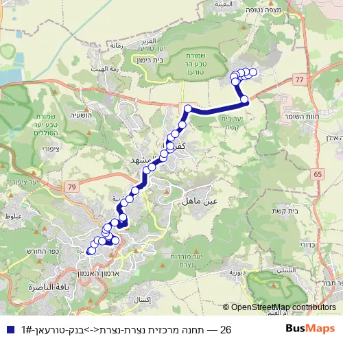 Bus 26 - תחנה מרכזית נצרת-נצרת<->בנק-טורעאן-1#: Full Schedule in Nazareth