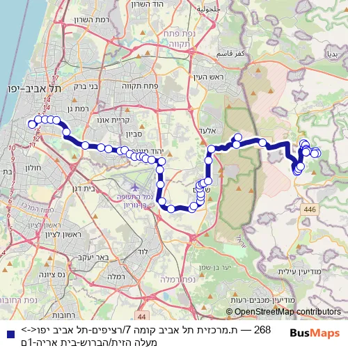 Bus 268 - ת.מרכזית תל אביב קומה 7/רציפים-תל אביב יפו<->מעלה הזית/הברוש-בית אריה-1ם: Full Schedule in Ramla