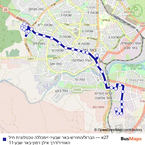 Bus 27א - הברזל/החורש-באר שבע<->מכללה טכנולוגית חיל האוויר/דרך אילן רמון-באר שבע-11: Full Schedule in Beersheba