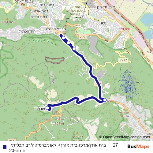 Bus 27 - בית אורן/מרכז-בית אורן<->אוניברסיטה/רב תכליתי-חיפה-20 in Haifa: Stops & Timetable