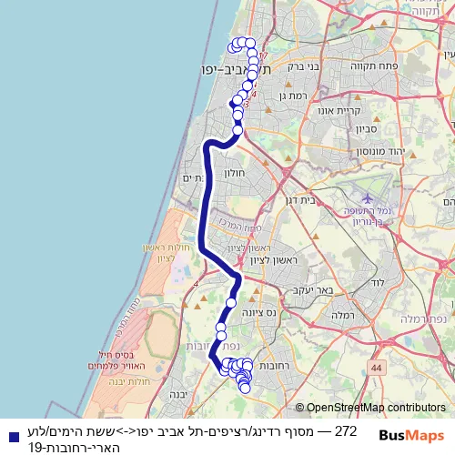 Bus 272 - מסוף רדינג/רציפים-תל אביב יפו<->ששת הימים/לוע הארי-רחובות-19: Full Schedule in Ramla