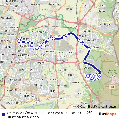 Bus 279 - רבן יוחנן בן זכאי/רבי יהודה הנשיא-אלעד<->האופן/החרש-פתח תקווה-10: Full Schedule in Tel Aviv