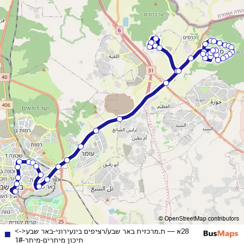 Bus 28א - ת.מרכזית באר שבע/רציפים בינעירוני-באר שבע<->תיכון מיתרים-מיתר-1# in Beersheba: Stops & Timetable