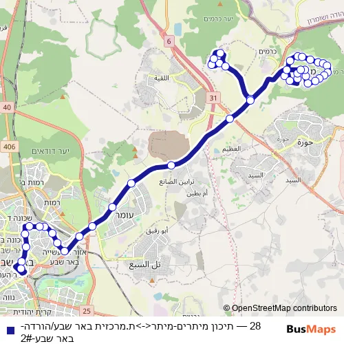 Bus 28 - תיכון מיתרים-מיתר<->ת.מרכזית באר שבע/הורדה-באר שבע-2# in Beersheba: Stops & Timetable