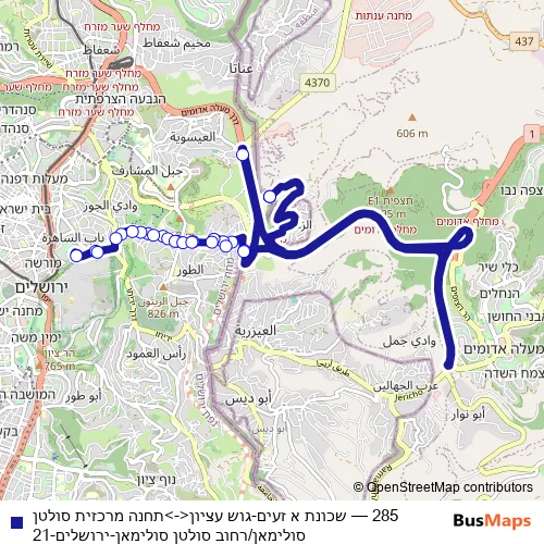 Bus 285 - שכונת א זעים-גוש עציון<->תחנה מרכזית סולטן סולימאן/רחוב סולטן סולימאן-ירושלים-21: Full Schedule in Jerusalem