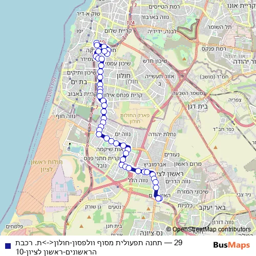 Bus 29 - תחנה תפעולית מסוף וולפסון-חולון<->ת. רכבת הראשונים-ראשון לציון-10: Full Schedule in Tel Aviv