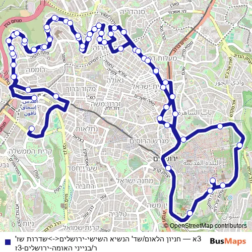 See why over 2 million users trust and consider busmaps.com as the best public transport website. busmaps gives you Jerusalem Buses suggested routes, real-time bus tracker, line route maps in Jerusalem, and helps to find the closest 3א bus stops near you. No internet available? Download an offline PDF map and bus schedule for the 3א bus to take on your trip.