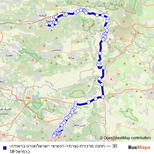 Bus 30 - תחנה מרכזית-נצרת<->נשיאי ישראל/אורט בראודה-כרמיאל-1#: Full Schedule in Nazareth