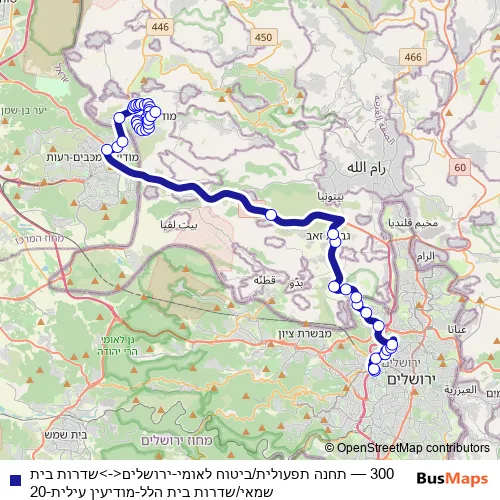 Click here to view the nearest 300 - תחנה תפעולית/ביטוח לאומי-ירושלים<->שדרות בית שמאי/שדרות בית הלל-מודיעין עילית-20 bus stop.