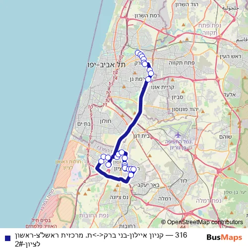 Bus 316 - קניון איילון-בני ברק<->ת. מרכזית ראשל'צ-ראשון לציון-2#: Full Schedule in Ramla