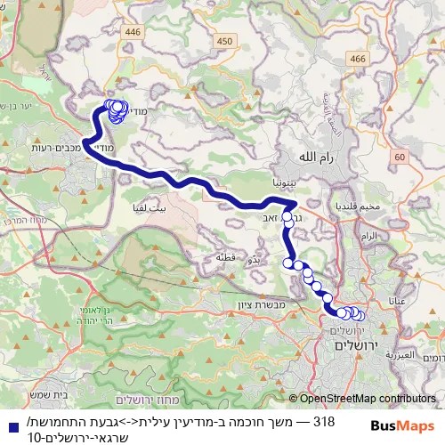 Click here to view the nearest 318 - משך חוכמה ב-מודיעין עילית<->גבעת התחמושת/שרגאי-ירושלים-10 bus stop.
