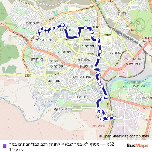 Bus 32א - מסוף י'א-באר שבע<->חניון רכב כבד/הבונים-באר שבע-11: Full Schedule in Beersheba