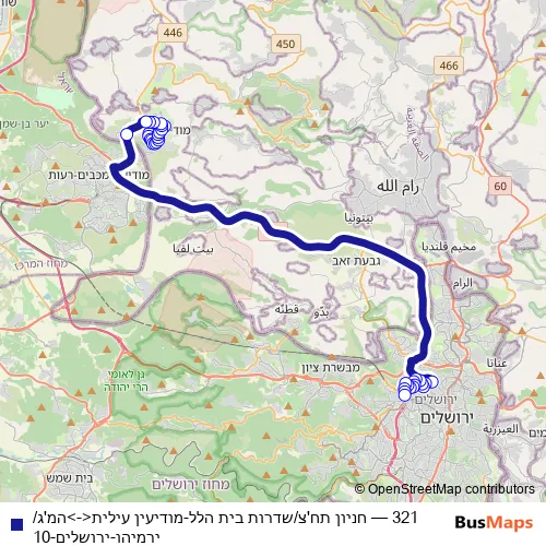 Click here to view the nearest 321 - חניון תח'צ/שדרות בית הלל-מודיעין עילית<->המ'ג/ירמיהו-ירושלים-10 bus stop.