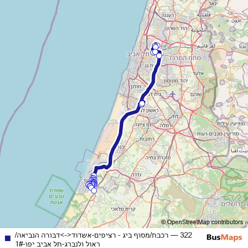 Bus 322 - רכבת/מסוף ביג - רציפים-אשדוד<->דבורה הנביאה/ראול ולנברג-תל אביב יפו-1#: Full Schedule in Ashdod