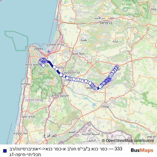 Bus 333 - כפר כנא ב'/בי'ס חט'ב א-כפר כנא<->אוניברסיטה/רב תכליתי-חיפה-1ג: Full Schedule in Nazareth