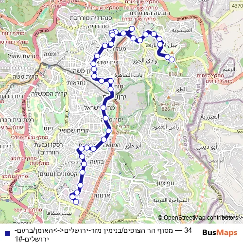 Bus 34 - מסוף הר הצופים/בנימין מזר-ירושלים<->האומן/ברעם-ירושלים-1# Schedule in Jerusalem