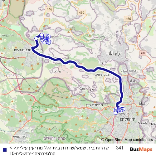 Click here to view the nearest 341 - שדרות בית שמאי/שדרות בית הלל-מודיעין עילית<->המ'ג/ירמיהו-ירושלים-10 bus stop.