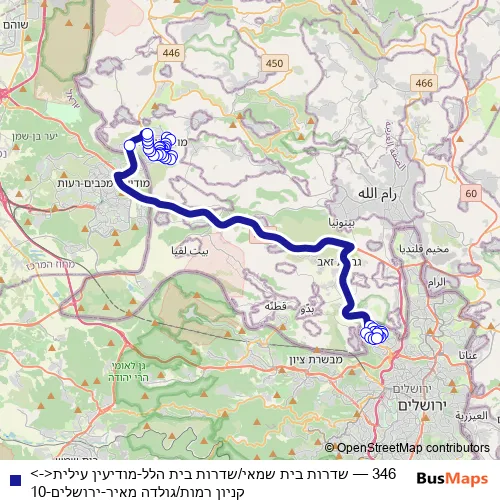 Click here to view the nearest 346 - שדרות בית שמאי/שדרות בית הלל-מודיעין עילית<->קניון רמות/גולדה מאיר-ירושלים-10 bus stop.