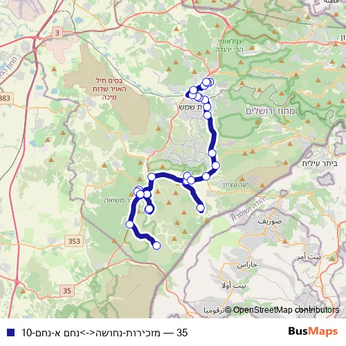 Bus 35 - מזכירות-נחושה<->נחם א-נחם-10 in Jerusalem: Stops & Timetable
