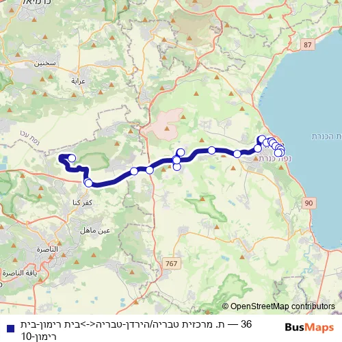 Bus 36 - ת. מרכזית טבריה/הירדן-טבריה<->בית רימון-בית רימון-10 Schedule in Tiberias