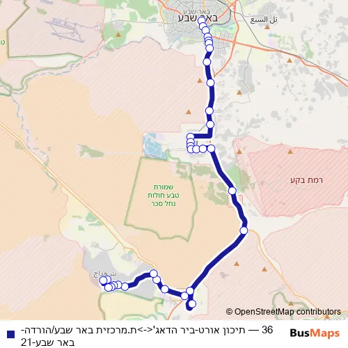Bus 36 - תיכון אורט-ביר הדאג'<->ת.מרכזית באר שבע/הורדה-באר שבע-21 in Beersheba: Stops & Timetable