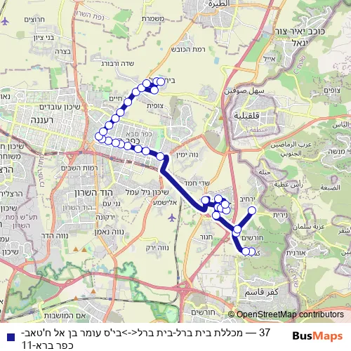 Click here to view the nearest 37 - מכללת בית ברל-בית ברל<->בי'ס עומר בן אל ח'טאב-כפר ברא-11 bus stop.
