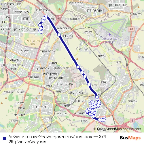 Bus 374 - אהוד מנור/עוזי חיטמן-רמלה<->שדרות ירושלים/מפרץ שלמה-חולון-29 Schedule in Ramla