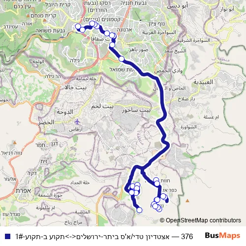 Click here to view the nearest 376 - אצטדיון טדי/א'ס ביתר-ירושלים<->תקוע ב-תקוע-1# bus stop.