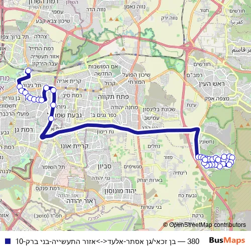 Click here to view the nearest 380 - בן זכאי/גן אסתר-אלעד<->אזור התעשייה-בני ברק-10 bus stop.