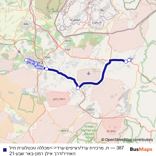 Bus 387 - ת. מרכזית ערד/רציפים-ערד<->מכללה טכנולוגית חיל האוויר/דרך אילן רמון-באר שבע-21: Full Schedule in Beersheba