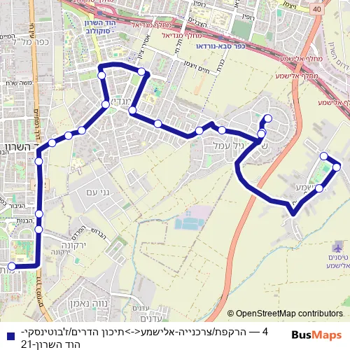 מטרופולין 4 הרקפת/צרכנייה-אלישמע<->תיכון הדרים/ז'בוטינסקי-הוד השרון-21 Bus
