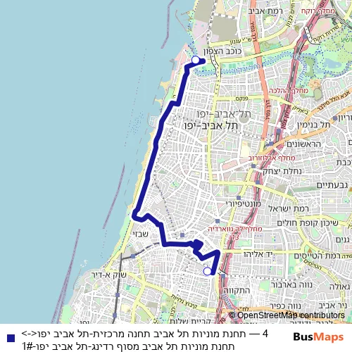 Click here to view the nearest 4 - תחנת מוניות תל אביב תחנה מרכזית-תל אביב יפו<->תחנת מוניות תל אביב מסוף רדינג-תל אביב יפו-1# bus stop.