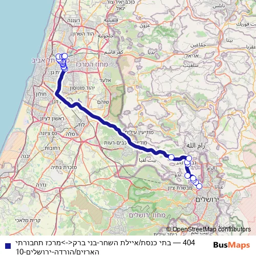 Bus 404 - בתי כנסת/איילת השחר-בני ברק<->מרכז תחבורתי הארזים/הורדה-ירושלים-10 in Tel Aviv: Stops & Timetable