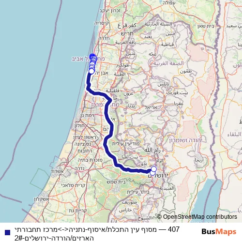 Bus 407 - מסוף עין התכלת/איסוף-נתניה<->מרכז תחבורתי הארזים/הורדה-ירושלים-2#: Full Schedule in Netanya