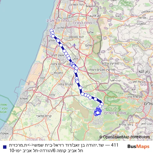 Click here to view the nearest 411 - שד.יהודה בן זאב/דוד רזיאל-בית שמש<->ת.מרכזית תל אביב קומה 6/הורדה-תל אביב יפו-10 bus stop.