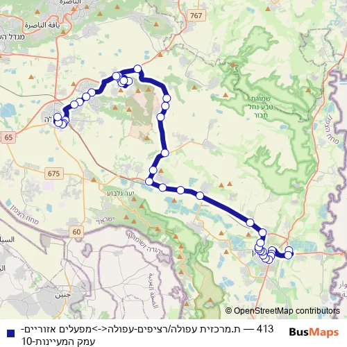 Bus 413 - ת.מרכזית עפולה/רציפים-עפולה<->מפעלים אזוריים-עמק המעיינות-10 in Nazareth: Stops & Timetable