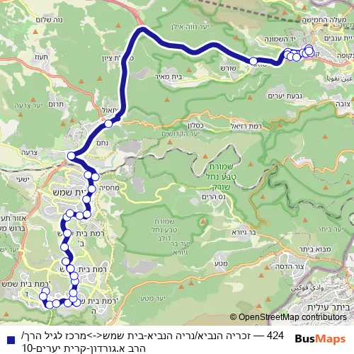 תנופה 424 זכריה הנביא/נריה הנביא-בית שמש<->מרכז לגיל הרך/הרב א.גורדון-קרית יערים-10 Bus