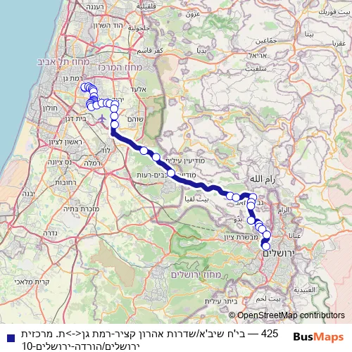 Bus 425 - בי'ח שיב'א/שדרות אהרון קציר-רמת גן<->ת. מרכזית ירושלים/הורדה-ירושלים-10: Full Schedule in Tel Aviv