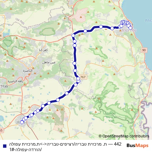 Bus 442 - ת. מרכזית טבריה/רציפים-טבריה<->ת.מרכזית עפולה/הורדה-עפולה-1# in Nazareth: Stops & Timetable