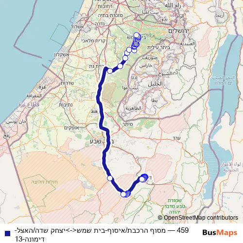 Services on the 459 - מסוף הרכבת/איסוף-בית שמש<->יצחק שדה/האצל-דימונה-13 bus stop at 01:28 +1 on יום שישי, יום שבת.