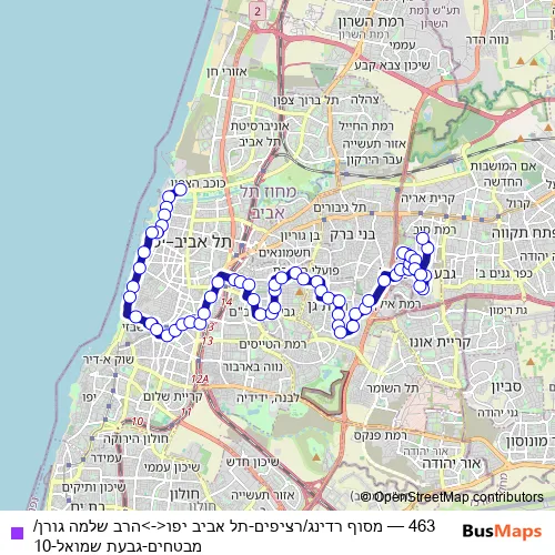 See why over 2 million users trust and consider busmaps.com as the best public transport website. busmaps gives you Tel Aviv Buses suggested routes, real-time bus tracker, line route maps in Tel Aviv, and helps to find the closest 463 bus stops near you. No internet available? Download an offline PDF map and bus schedule for the 463 bus to take on your trip.