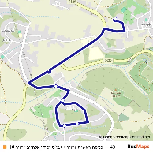 The first stop of the 49 bus route is בי'ס יסודי אלהייב and the last stop is עיאדאת יציאה. 49 (כניסה ראשית-זרזיר<->בי'ס יסודי אלהייב-זרזיר-1#) is operational during כל יום.