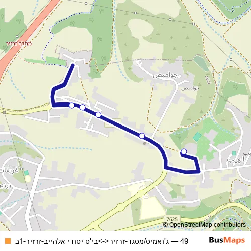 Click here to view the nearest 49 - ג'ואמיס/מסגד-זרזיר<->בי'ס יסודי אלהייב-זרזיר-1ב bus stop.
