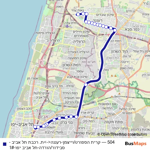 Bus 504 - קרית הספורט/וייצמן-רעננה<->ת. רכבת תל אביב - סבידור/הורדה-תל אביב יפו-1# Schedule in Tel Aviv
