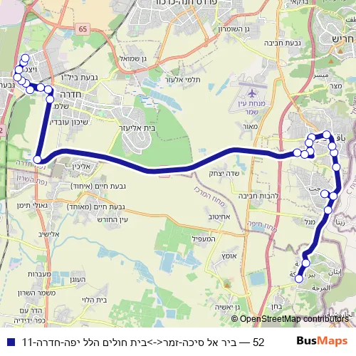 52 (ביר אל סיכה-זמר<->בית חולים הלל יפה-חדרה-11) Bus in Hadera