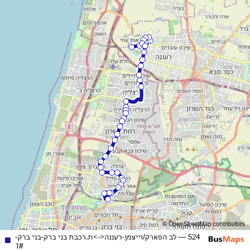 Bus 524 - לב הפארק/וייצמן-רעננה<->ת.רכבת בני ברק-בני ברק-1# in Tel Aviv: Stops & Timetable