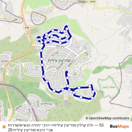 Bus 53 - ת'ת קרלין-מודיעין עילית<->רבי יהודה הנשיא/שדרות אביי ורבא-מודיעין עילית-20: Full Schedule in Modiin Ilit