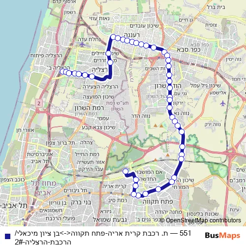 Bus 551 - ת. רכבת קרית אריה-פתח תקווה<->בן ציון מיכאלי/הרכבת-הרצליה-2# in Tel Aviv: Stops & Timetable