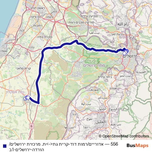 Bus 556 - אדוריים/רמות דוד-קרית גת<->ת. מרכזית ירושלים/הורדה-ירושלים-1ב: Full Schedule in Jerusalem